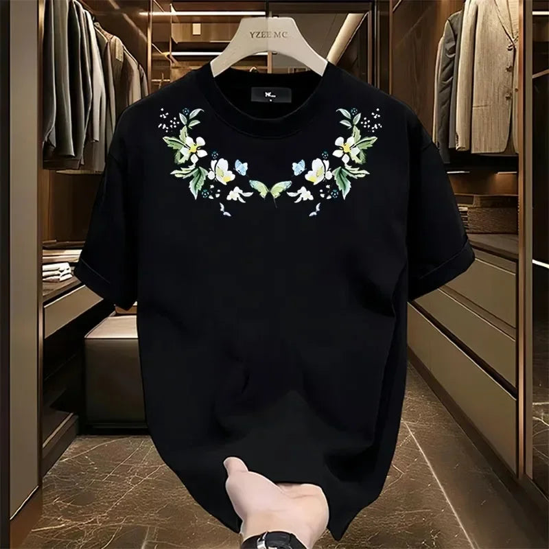 Men’s Luxury 100% Cotton T-Shirt – High-End Pattern Print, Trendy Summer Fashion Tee